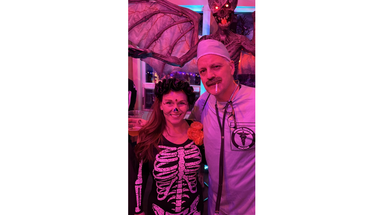 1 of 1 Great time at the Hill Bar n' Grille Brews & Boos Party. Stacie is a sexy skeleton and I am "Dr. Finger" a doctor of all medicine really.