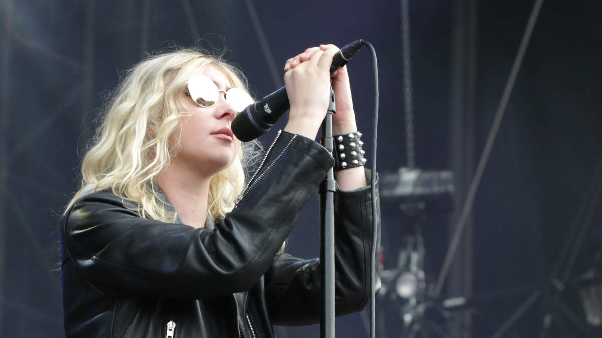Taylor Mommsen of "The Pretty Reckless" was on stage when a bat landed on her and clung to her dress! At first she didnt notice it until the crowd started pointing at her dress-